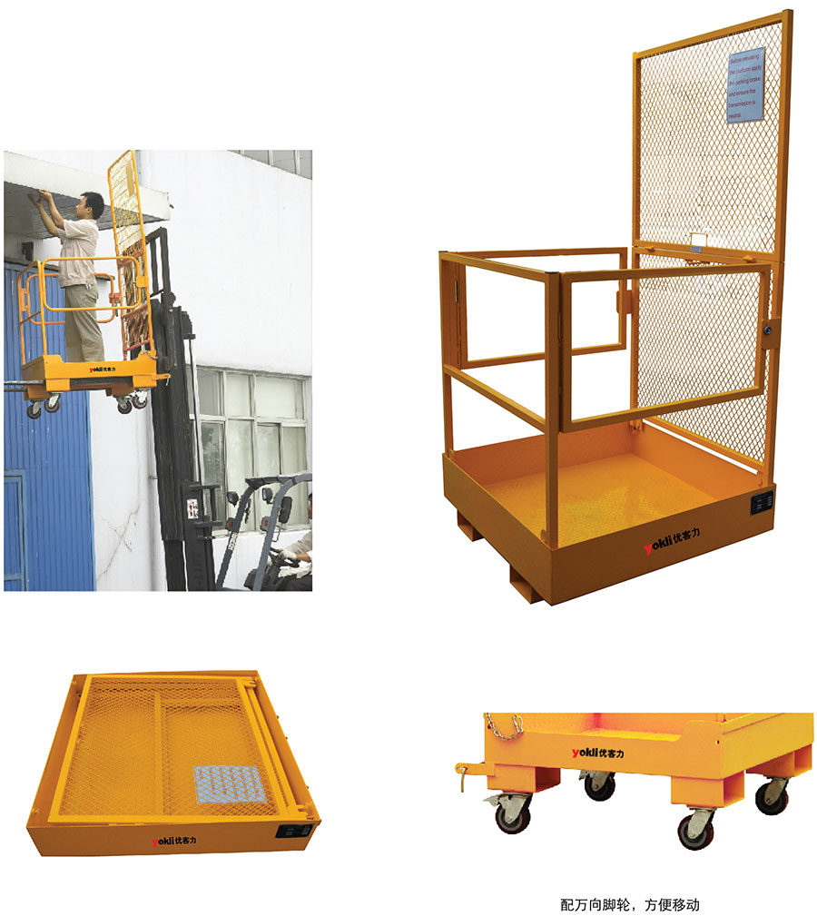 ● 載人平臺通過安全長銷和和鏈條固定在貨叉上,確保不會滑動。