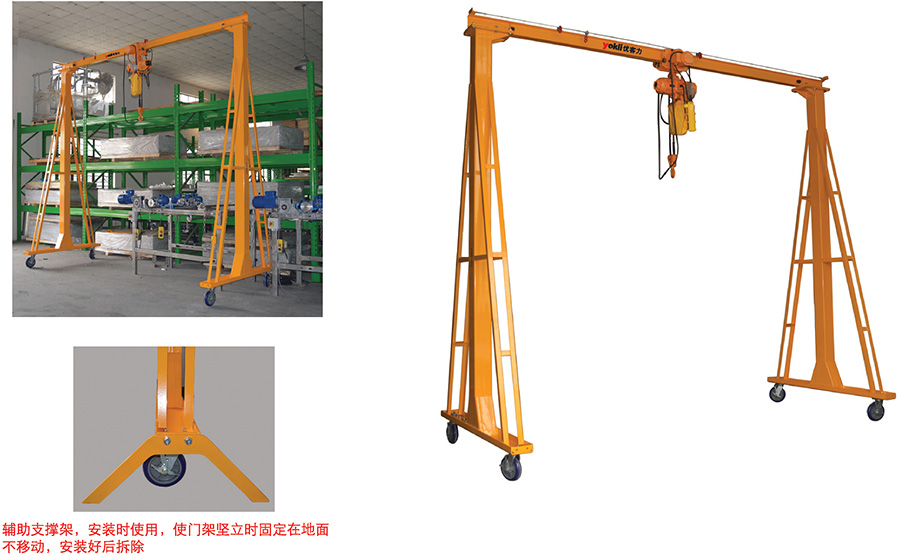 ● 橫梁為工字梁,可選配移動小車、手拉葫蘆、電動葫蘆等。