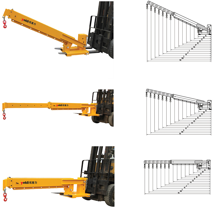 ● 可調(diào)伸縮超長吊臂,適用于叉車不易進(jìn)入的區(qū)域進(jìn)行操作,特別適用于用叉車吊裝集裝箱。