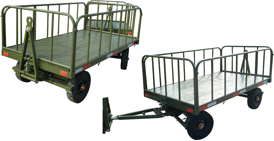● 采用500-8實心輪胎4只,雙轉盤轉向,可列車牽引。