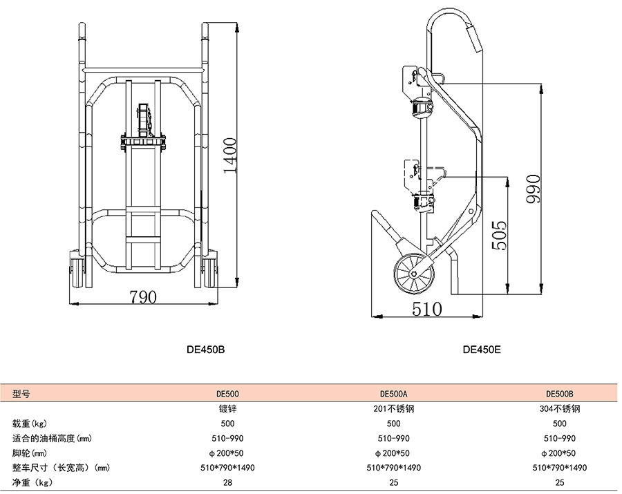 DT標(biāo)準(zhǔn)型液壓油桶搬運車